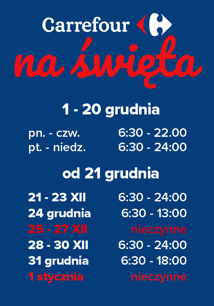 Abyśmy wszyscy w spokoju i bez tłumów zrobili przedświąteczne zakupy, hipermarket Carrefour w Galerii Olimpia wydłużył godziny otwarcia.