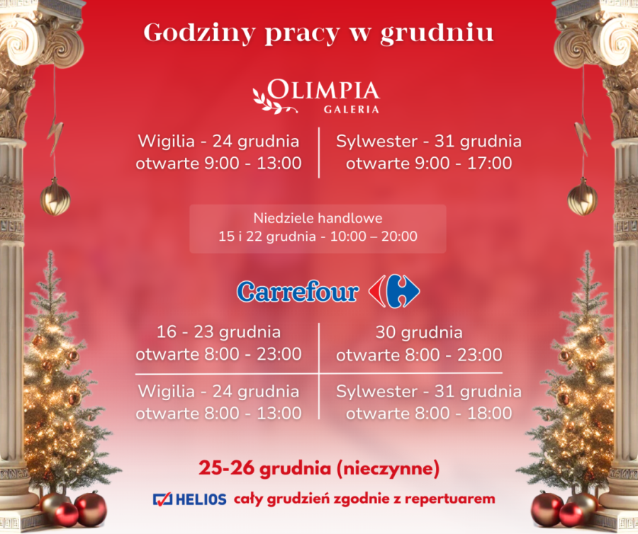 Wigilia – 24 grudnia: otwarte 9:00 - 13:00